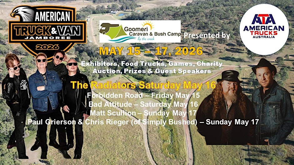 n 2026 the American Truck and Van Jamboree will be held at Goomeri Caravan and Bush Camp at Goomeri from May 15 – 17. This peaceful Creekside camp is approximately 10 minutes from the Goomeri Township and only two and a half hours North West of Brisbane.